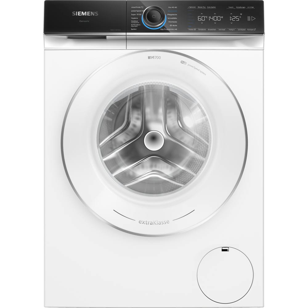 WG44B2090 iQ700, Waschmaschine, Frontlader, 9 kg, 1400 U/min.Die intelligente Waschmaschine mit Antiflecken-System und SpeedPack XLArtikel-Merkmale:speedPack XL – Programme beschleunigen, die Dauer einstellen oder in nur 15 Min. waschen.Bedienen Sie Ihre Waschmaschine von wo Sie wollen, wann Sie wollen - mit der Home Connect App (Android und iOS).Antiflecken-System - Entfernt zuverlässig 16 der hartnäckigsten Fleckenarten.Beste Energie-Effizienzklasse A – unsere energieeffizienteste Waschmaschine.HerstellerSIEMENSWerksnummerWG44B2090ProduktdatenblattGarantie.pdfPreis inkl. gesetzl. MwSt., ggf. zzgl. VersandkostenMenge in STCK -+In den Warenkorb×In den WarenkorbBitte warten...Unsere Vor-Ort-Services für Ihre Lieferadresse aktivieren: Serviceregion prüfenSie befinden sich in der Serviceregion!Sie befinden sich außerhalb der Serviceregion!Der Artikel wird in den Warenkorb gelegt...Möchten Sie den Artikel in den Warenkorb legen und weiter einkaufen oder direkt in den Warenkorb gehen?MerkenVergleichenProduktanfrageHaben Sie Fragen zu diesem Produkt?Frage stellenSie haben noch Fragen oder wünschen eine persönliche Beratung vor Ort?Wir von W. Walgenbach GmbH & Co KG. helfen Ihnen gerne weiter!Jetzt Kontakt aufnehmenSie haben noch Fragen oder wünschen eine persönliche Beratung vor Ort?Wir von W. Walgenbach GmbH & Co KG. helfen Ihnen gerne weiter!Jetzt Kontakt aufnehmenProduktsteckbriefTechn. DatenServiceleistungProduktsteckbriefProgrammeStandardprogramme: Baumwolle, Pflegeleicht, Fein/Seide, Wolle-HandwäschesmartFinish: Dampfprogramm für trockene Kleidungsstücke zur Reduzierung des BügelaufwandsHygiene: Saubere Wäsche und effektive Beseitigung von KeimenZusätzliche Programme über Home Connect: Daunen, Handtücher, Hemden, Sport/Fitness, Drum clean & Erinnerungsfunkt., Jeans/dunkle WäscheSpezialprogramme: Outdoor/Imprägnieren, Schleudern / Abpumpen, powerSpeed 59', Schnell/Mix, Spülen, Super 30'/15', Hygiene, App, smartFinishOptionenHome Connect: Fernsteuerung, Energiemanagement, Ferndiagnose, IntelligentDry oder Programm Download. Halten Sie Ihre Hausgeräte dank Firmware-Update immer auf dem neuesten Stand.Fleckenautomatik: standardmäßig 6 Flecken-Optionen und 10 weitere über die HomeConnect-AppMini Load: wasche Einzelteile und kleine Wäscheposten schnell und effizient im optimalen ProgrammtouchControl-Tasten: Ein/Aus, Einweichen, Fertig in, Fleckenauswahl, Kindersicherung, Memory, Extraspülen, Fernstart, Start / Pause mit Nachlegefunktion, Temperatur, varioSpeed, Vorwäsche, Wasser Plus, Drehzahlabwahl/ohne SchleudernKomfort und SicherheitpowerSpeed System: bessere Waschergebnisse in kürzerer ZeitsoftTrommel: besonders schonende und wirkungsvolle WäschepflegeTrommelinnenbeleuchtung: LEDiQdrive: energiesparenste und leiseste Motorentechnologieanti-vibration Design: mehr Stabilität und LaufruhedirectTouch Plus: intuitive Bedienung für einfachste ProgrammwahlNachlegefunktion: Unterbrechen Sie den bereits gestarteten Waschvorgang, um weitere Wäschestücke in die Trommel zu legen.Anzeige für ÜberdosierungwaterPerfect Plus: für eine effiziente Wassernutzung auch bei geringer Beladung dank intelligenter Sensortechnologie.GeräuschdämmungSchaumerkennungUnwuchtkontrolleSignal am ProgrammendeLeichtreinigungsschubladeEinsatz für FlüssigwaschmittelNutzungszähler: Zählt abgeschlossene ProgrammeKindersicherung32 cm-Bullauge, chrom, weiß mit 188° TüröffnungswinkelaquaStop®Technische Informationenunterschiebbar ab 85 cm NischenhöheGerätemaße (H x B): 84.5 cm x 59.8 cmGerätetiefe: 59.0 cmGerätetiefe inkl. Türe: 63.8 cmGerätetiefe mit geöffneter Türe: 109.0 cmTechn. DatenEnergieeffizienzklasse ... auf einer Skala von A (sehr effizient) bis G (weniger effizient)A Warenzeichen des LieferantenSiemens Modellkennung des LieferantenWG44B2090 Maximale Kapazität in kg9,0 kgGewichteter Energieverbrauch in kWh pro 100 Waschzyklen im Programm eco 40-6040 kWhEnergieverbrauch in kWh pro kg im Programm eco 40-60 pro Betriebszyklus0,395 kWhStromverbrauch im Aus-Zustand0,50 WStromverbrauch im Standby-Betrieb0,50 WWasserverbrauch in Litern im eco-Programm pro Betriebszyklus50 LiterSchleudereffizienzklasse des Programms eco 40-60B Schleuderdrehzahl des Programms eco 40-60 bei Nennkapazität in U/min1257 U/minRestfeuchte der Wäsche beim Programm eco 40-60 bei Nennkapazität in %53 %Dauer des Programms eco 40-60 in Stunden und Minuten bei Nennkapazität3:48 h:minDauer des Waschzyklus im Programm eco 40-60 in Stunden und Minuten bei halber Kapazität2:50 h:minDauer im Wasch-Betrieb des Programms eco 40-60 in Stunden und Minuten bei einem Viertel der Kapazität2:40 h:minLuftschallemissionen69 dBBauformStandgerät Art des WasserschutzsystemsAquastop BedienelementeDrehkontrolle;Per App Breite598 mmHöhe845 mmHöhenverstellung Füße maximal12 mmKnitterschutzsystemKnitterschutz am Programmende Tiefe590 mmAbsicherung10 AAnschlusswert2300 WArbeitsplatte abnehmbarNein AutomatikprogrammNein Bruttogewicht83.6 kgDrahtlose Kommunikation möglichJa, im Gerät eingebaut Fern-UpgradeJa GerätefarbeWeiß Gewicht82.6 kgHerkunftslandDE Höhenverstellbare FüßeJa - alle InnenbeleuchtungJa KaltwäscheJa Länge Anschlusskabel160 cmMarkennameSiemens ProgrammablaufanzeigeLED-Display ProgrammeBaumwolle, Fein/Seide, Programm Pflegeleicht, Wolle Handwäsche Remote-Update zur WartungNein RestzeitanzeigeJa SchaumerkennungJa Schleuderdrehzahl OptionenVariabel Software-UpdateNein Spannung220-240 VSprachsteuerungJa, mit optionalem Zubehör StartzeitvorwahlKontinuierlich SteuerungElektronisch TrommelmaterialEdelstahl Trommelvolumen65 lTüranschlagLinks TüröffnungGriff TypeWG44B2090 UnwuchtkontrolleJa Verwendete KommunikationstechnologieWiFi WassersicherheitssystemAquastop ServiceleistungService, den wir Ihnen gerne bieten.Als Fachhändler endet unsere Leistung nicht mit dem Bezahlen - wir lassen Sie auch beim Onlineeinkauf nicht im Stich. Denn wir montieren und installieren Ihre Großgeräte auf Wunsc