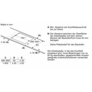 • Erforderliche Nischenmaße (HxBxT mm): 51 x 750 x (490 - 500)